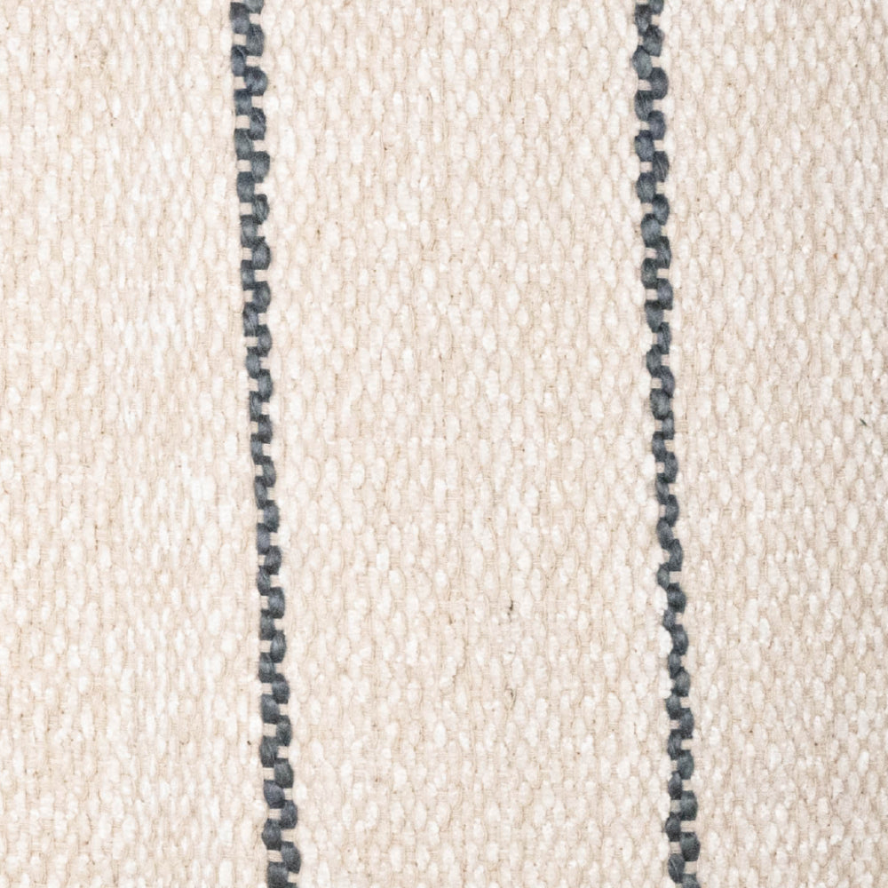 Contemporary minimalism - A beautifully handwoven white and natural base fabric effortlessly elevated with artistic, grey stripes.
